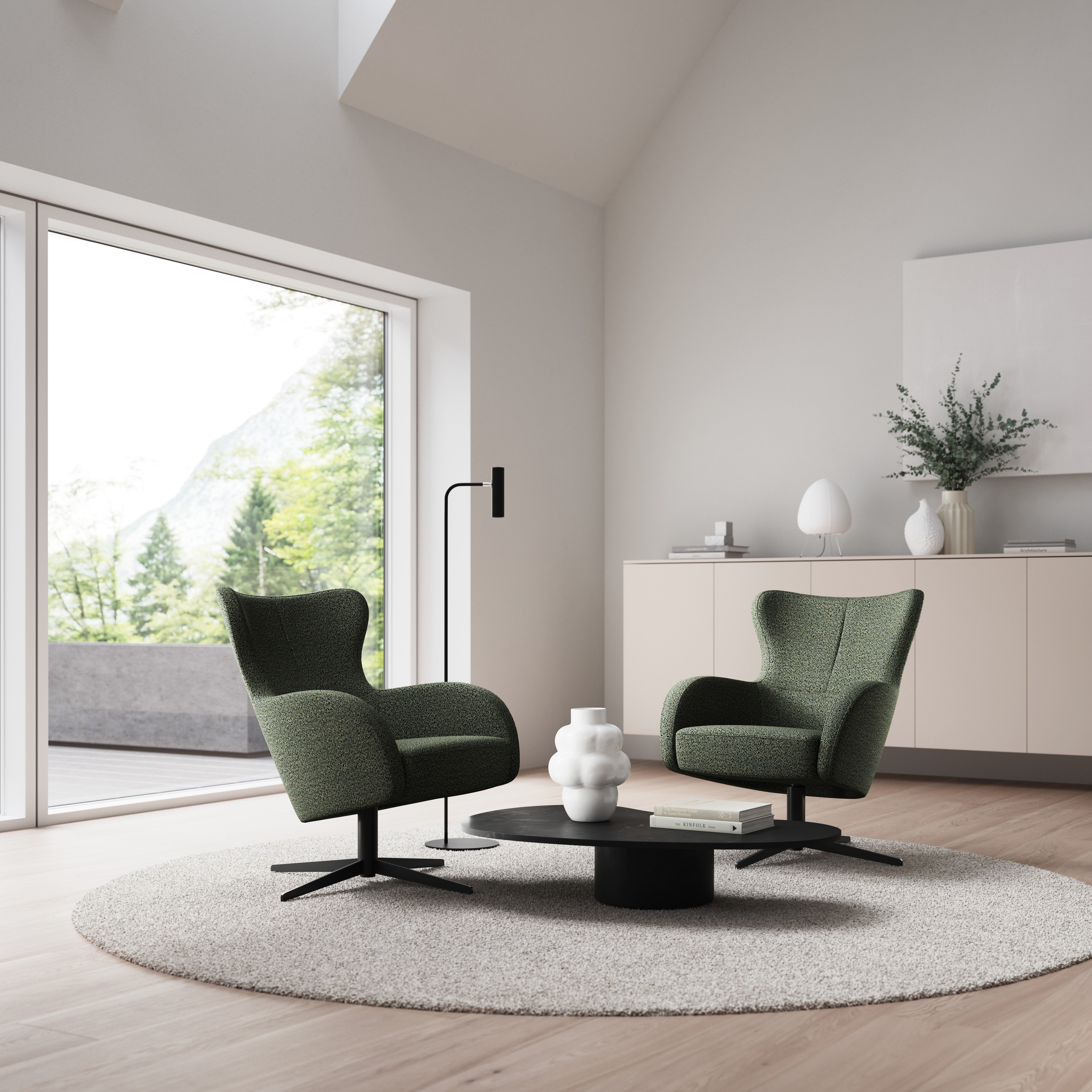 Bella Lounge med sokkel i stål og eik.