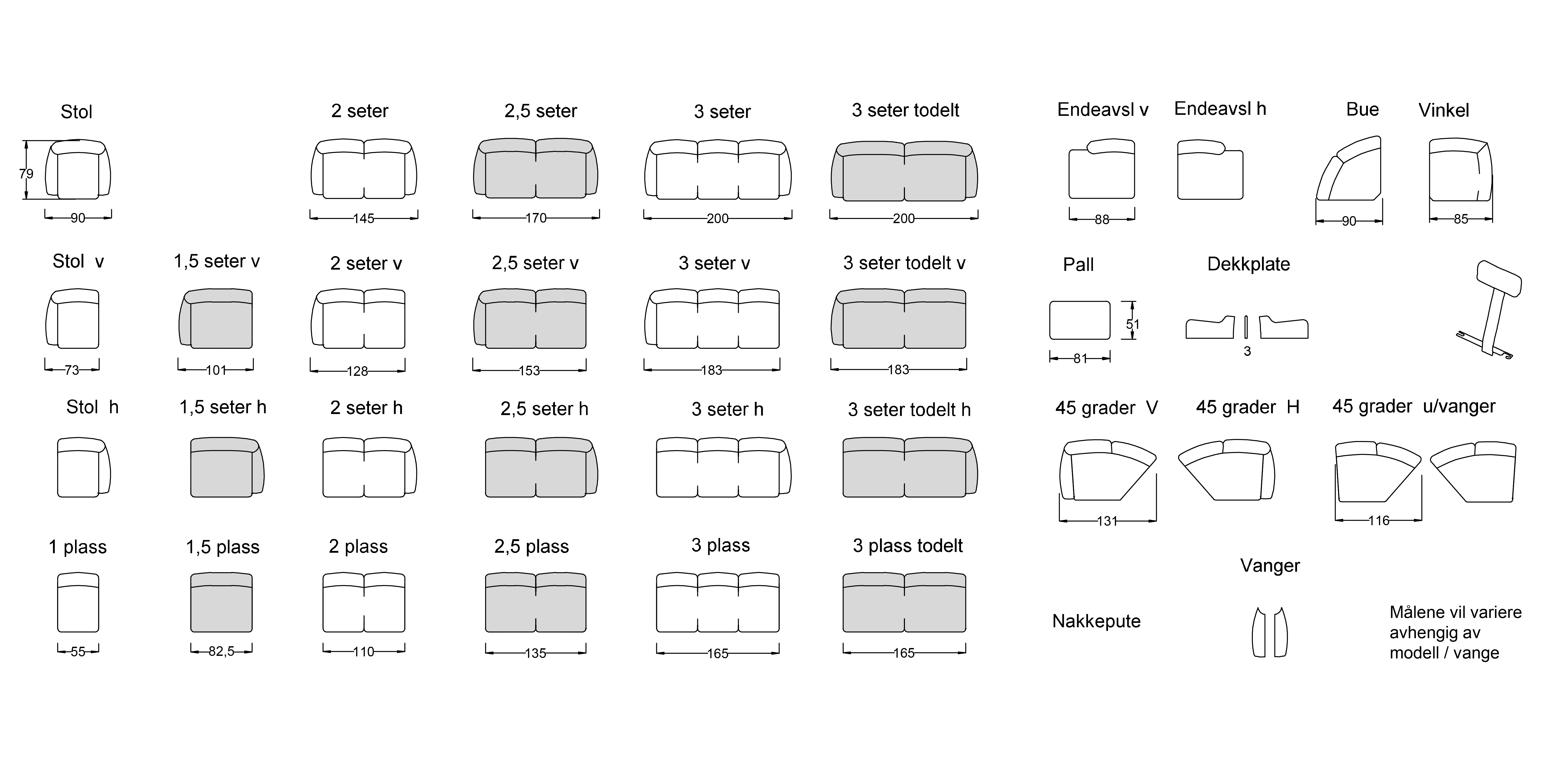 Fia Moderne B53 3 seter + vinkel + 2 seter